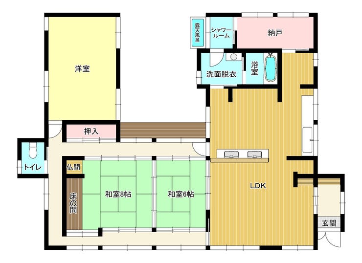 続き間の和室が開放的な、広々とした3LDKの間取りです。